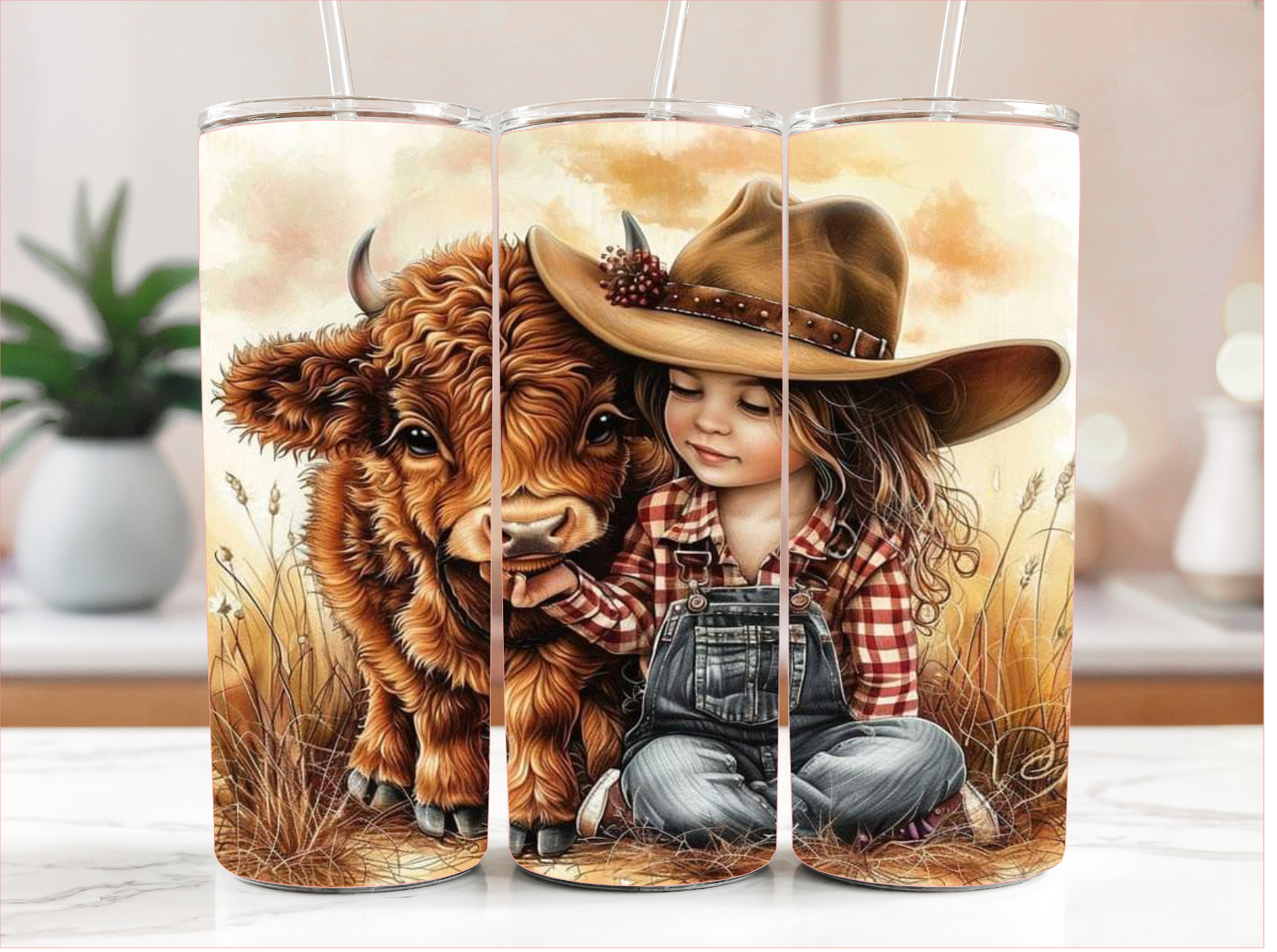 BABY HIGHLAND COW WITH LITTLE GIRL TUMBLER RTS