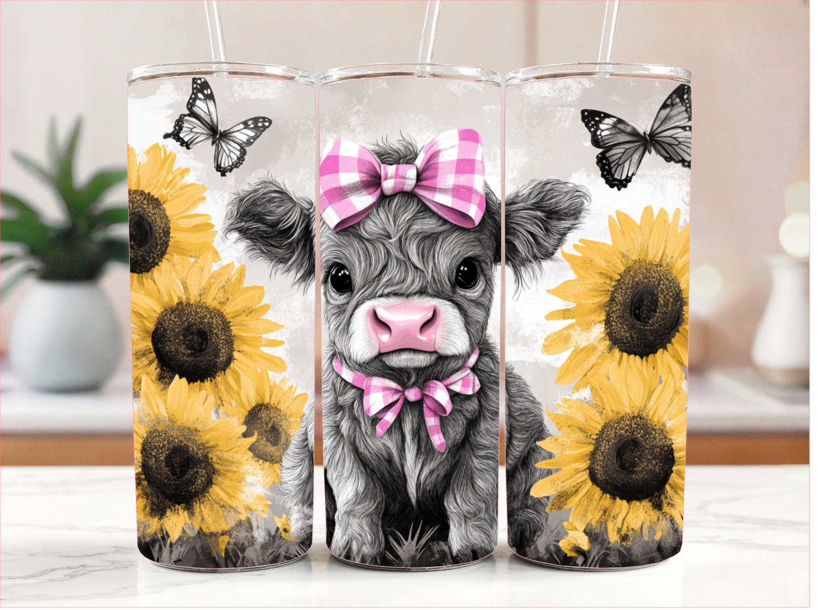 BABY HIGHLAND COW WITH SUNFLOWERS TUMBLER