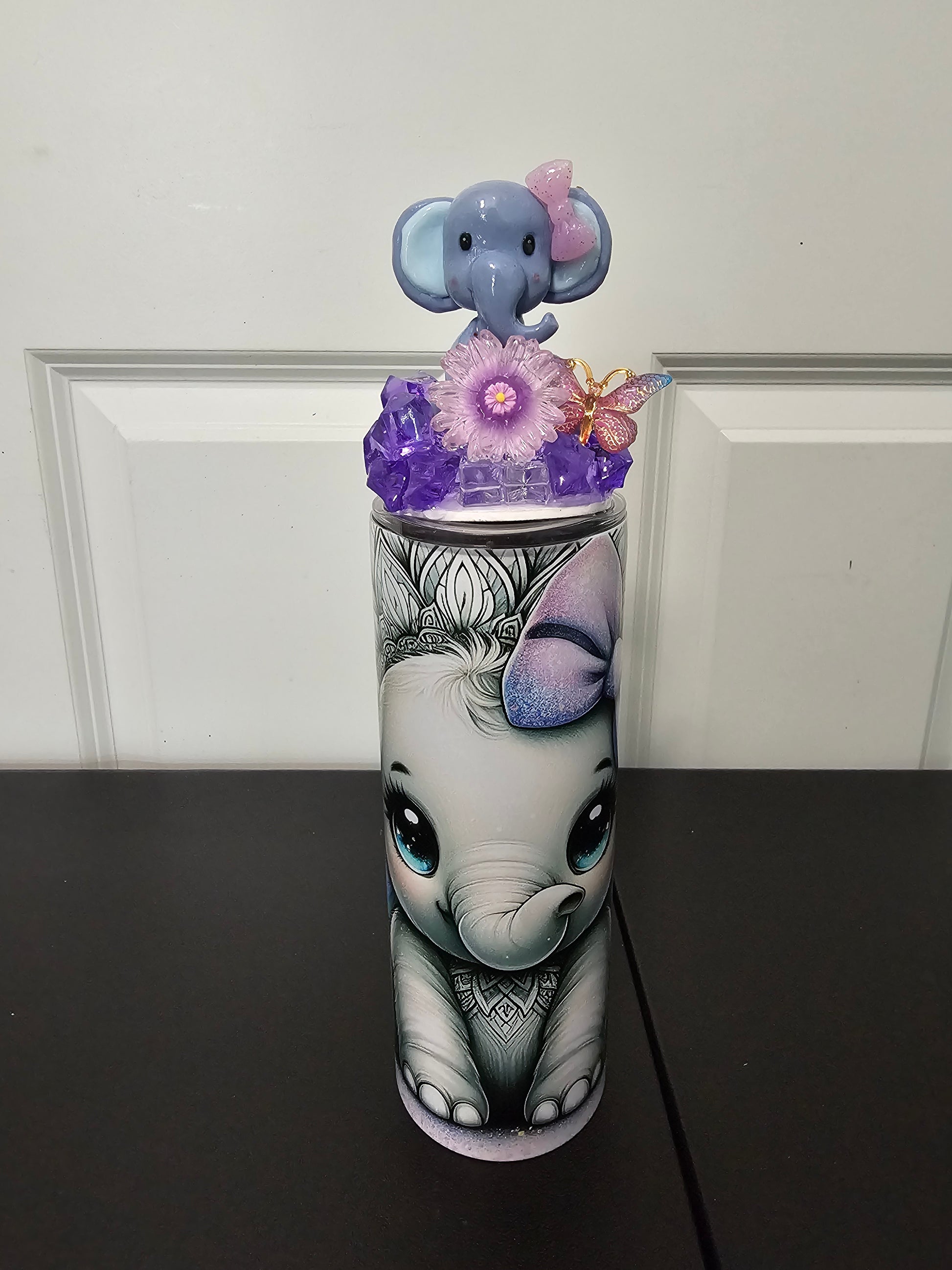 ELEPHANT WITH FLOWERS FANCY LID TUMBLER